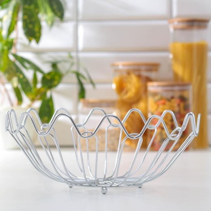 Стильная ваза для фруктов станет идеальным дополнением любого интерьера. Корзинка выполнена из окрашенного металла, что защищает её от коррозии. Благодаря оригинальному дизайну, фруктовница станет украшением вашей кухни или праздничного стола. Удобная конструкция позволит дольше сохранить фрукты свежими.