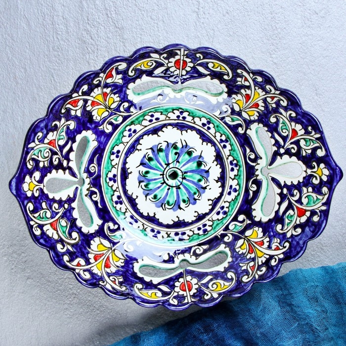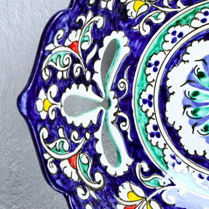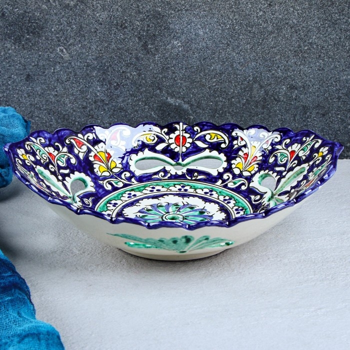 Фруктовница Риштанская Керамика "Узоры", 23 см, синяя