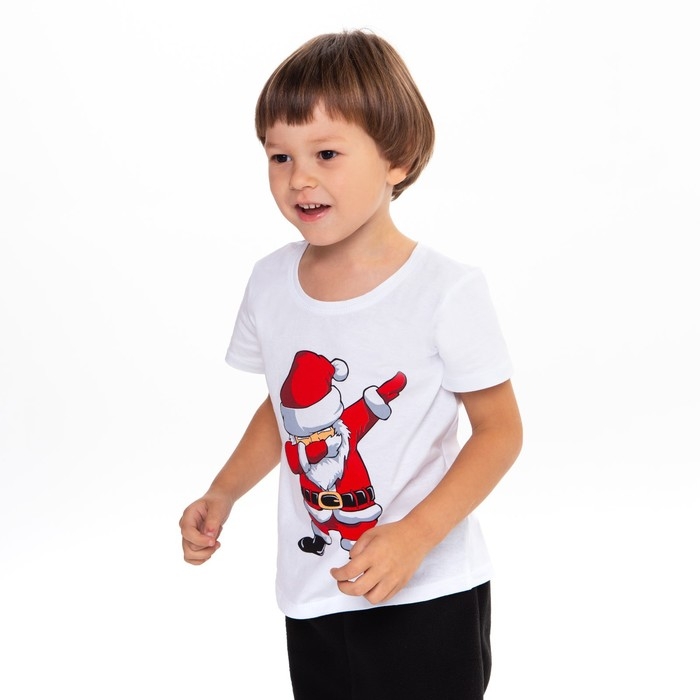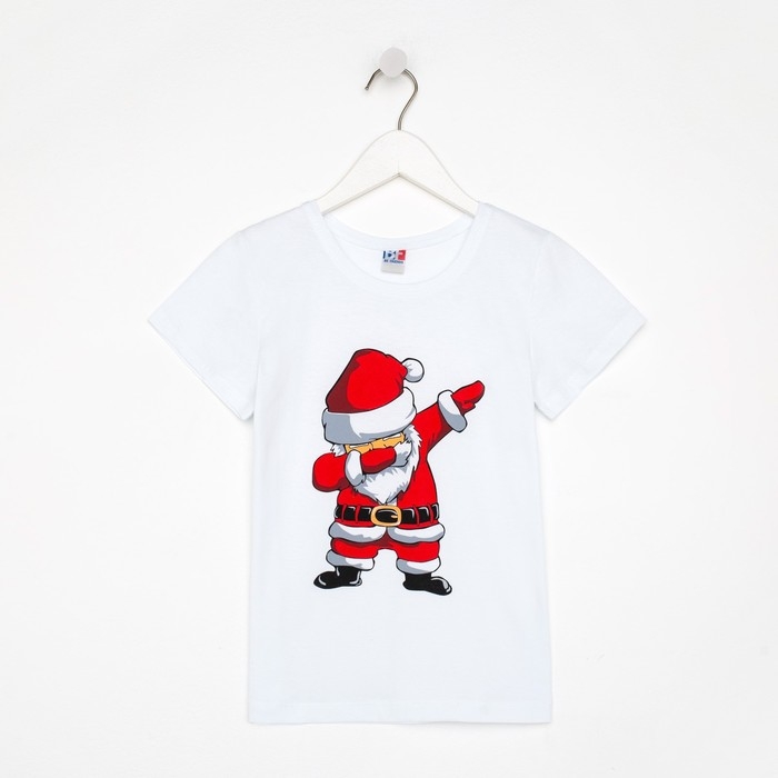 Футболка детская, цвет белый/дед мороз, рост 104 см