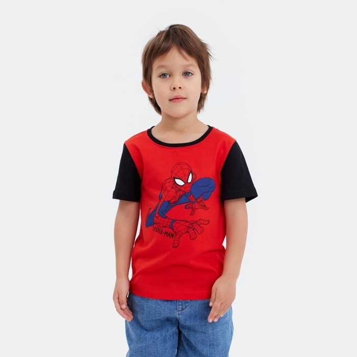 Футболка детская MARVEL «Человек паук», рост 110-116 (32), цвет красный/чёрный