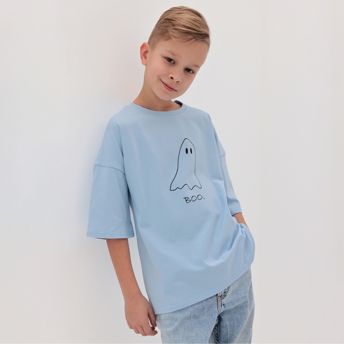 Футболка детская MINAKU: Exclusive print, цвет голубой, рост 116 см