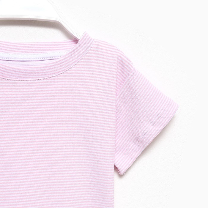 Футболка детская в полоску KAFTAN "Basic line", р.32 (110-116 см), розовый/белый