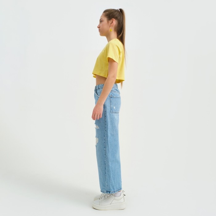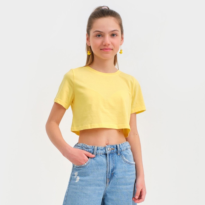 Футболка для девочки укороченная KAFTAN "Selfie", рост 146-152, цвет жёлтый
