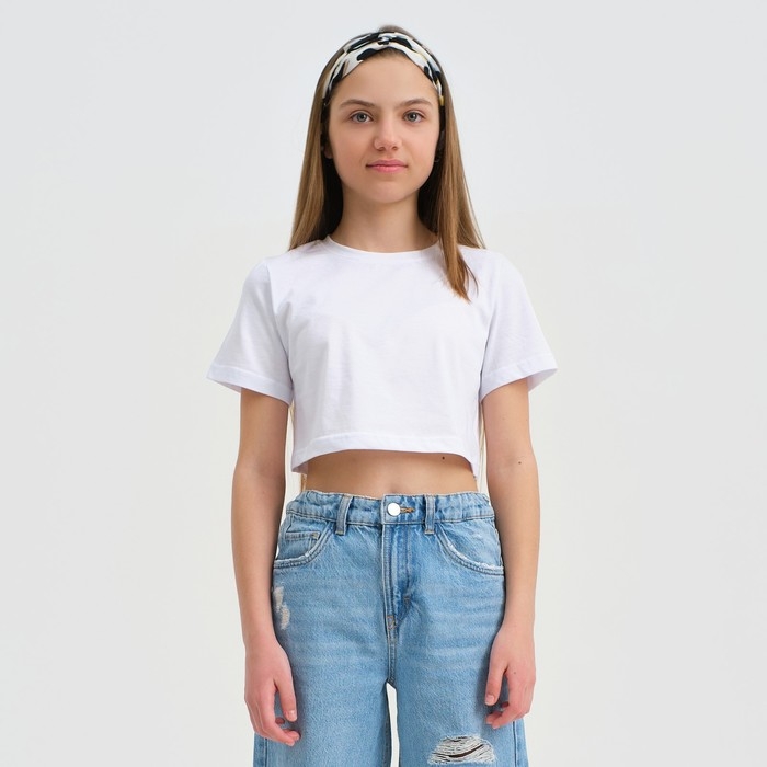 Футболка для девочки укороченная KAFTAN "Selfie", рост 164-170, цвет белый