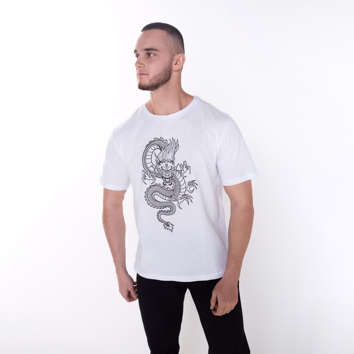 Футболка мужская «Дракон», цвет белый/принт чёрный, размер 50