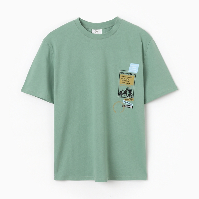 Футболка мужская "Горы", цвет зеленый, размер 52