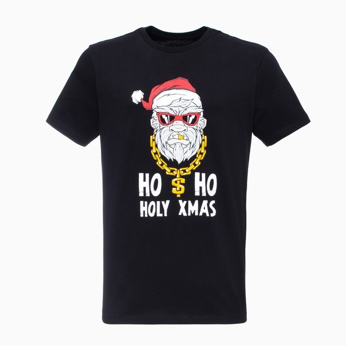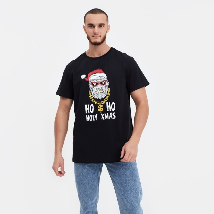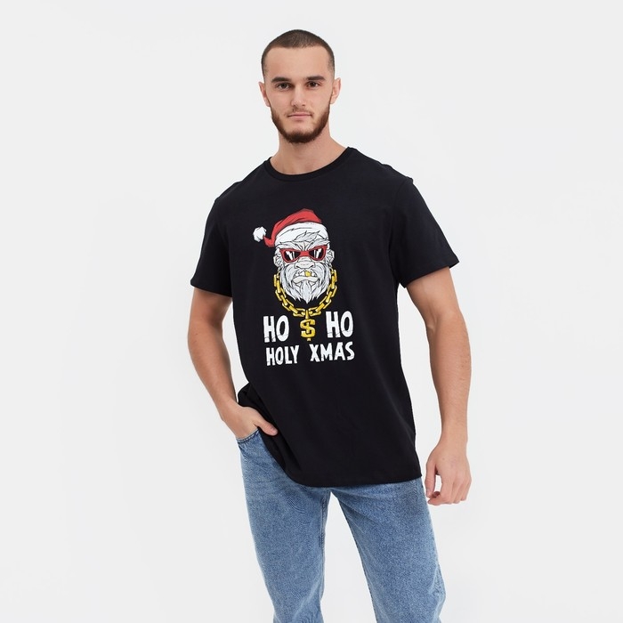 Футболка мужская новогодняя , цвет чёрный, размер 54
