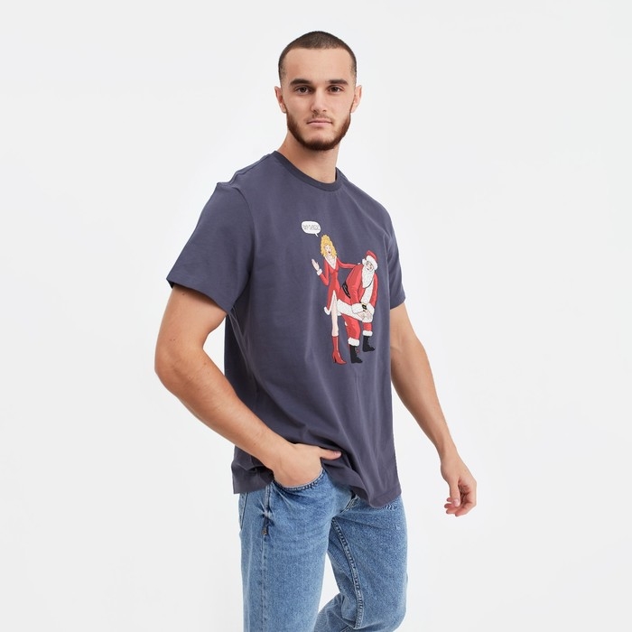 Футболка мужская новогодняя , цвет графит, размер 56