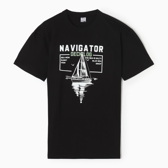 Футболка мужская с принтом, цвет чёрный, размер 48