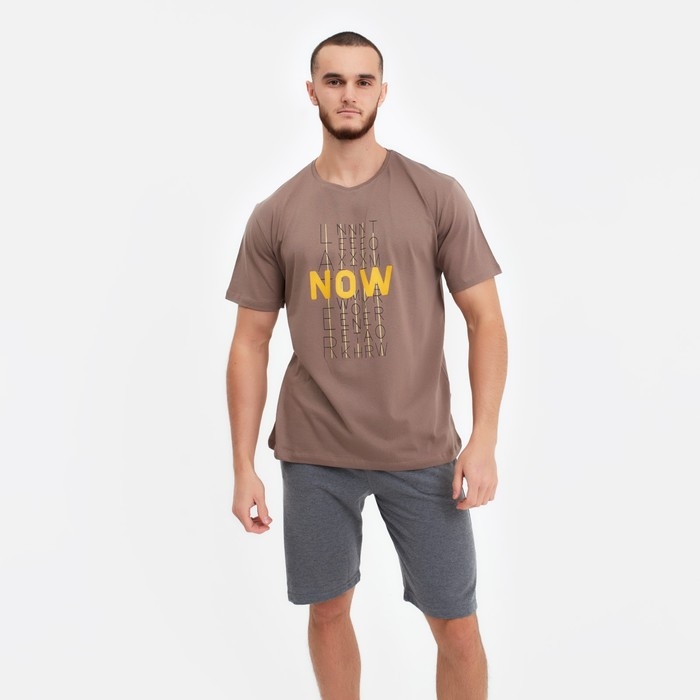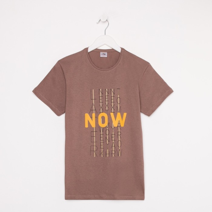 Футболка мужская с принтом, цвет светло-коричневый, размер 46