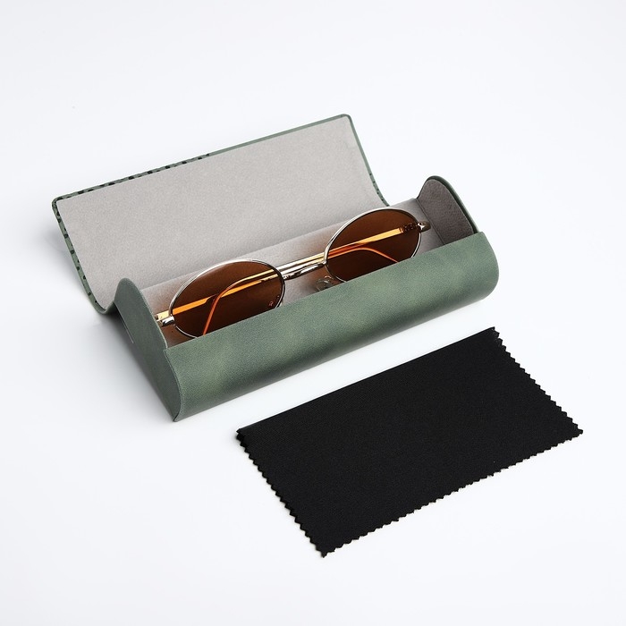 Футляр для очков — это необходимый аксессуар для любого современного человека, так как он поможет сохранить ваши очки в идеальном состоянии. Иногда возникают неудобства с ношением солнечных очков и очков для зрения одновременно, в этом случае нам пригодится специальный футляр для хранения очков. Футляр имеет жёсткий корпус, который защитит стёкла от пыли и предотвратит появление царапин и повреждений. Этот чехол – унисекс, он идеально подходит как для мужского, так и для женского стиля. Наш чехол для очков выполнен из качественной экокожи, которая обеспечивает надёжную защиту и долгий срок службы. Конверт имеет хлопушку, благодаря которой его можно легко и удобно закрыть. Этот чехол имеет горизонтальную форму, что позволяет легко и удобно хранить в нем очки. Также он обладает отличным солнцезащитным эффектом, благодаря специальному материалу, которая не пропускает ультрафиолетовые лучи. Очечник из искусственной кожи универсален благодаря своей однотонной фактуре и стильному дизайну. Его зелёный оттенок подойдёт каждому. Контейнер имеет удобную форму, которая позволяет легко и компактно хранить очки в сумке или кармане, не занимая много места. Жёсткий футляр — это прекрасный подарок для мужчин и женщин на любой праздник. За счёт своего модного внешнего вида футляр понравится парням или девушкам-подросткам.