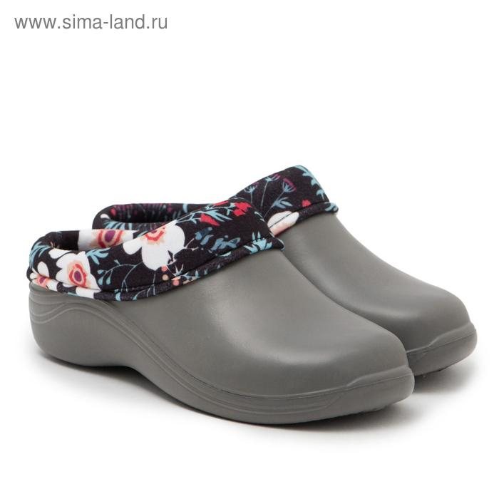 Галоши женские, цвет серый/цветочки, размер 36-37