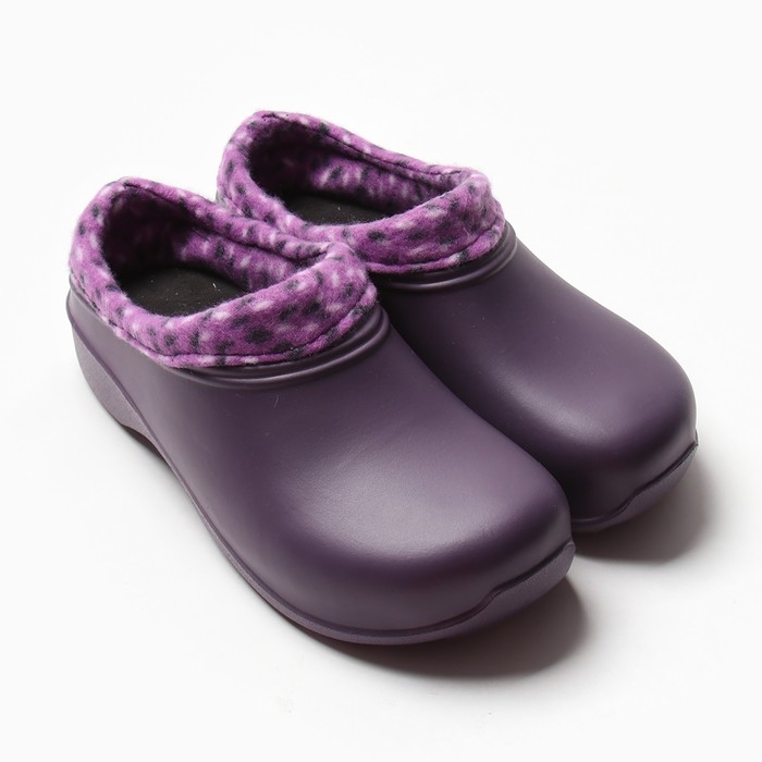 Галоши женские утепленные "Коро с отворотом" цвет баклажан/леопард чёрно-фиолет, размер 40