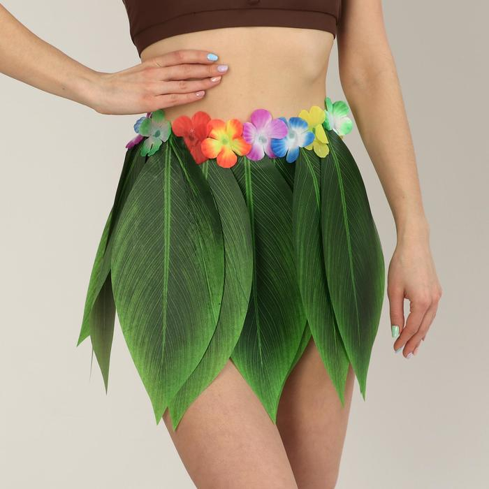 Гавайская юбка «Листики зеленые и цветочки» 36 см
