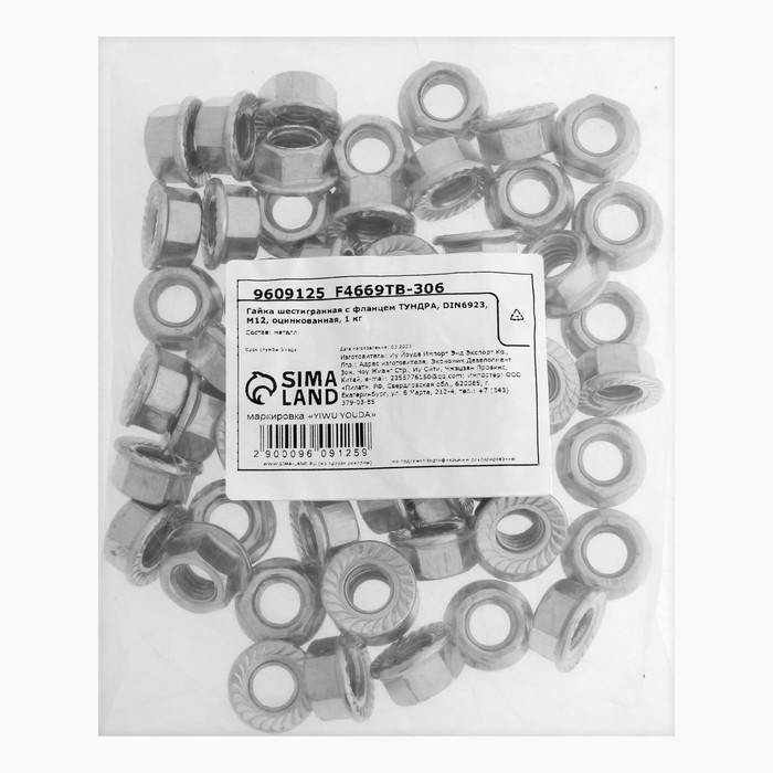 Гайка ТУНДРА, с фланцем, DIN 6923, класс прочности 8, оцинкованная, М12, 1 кг