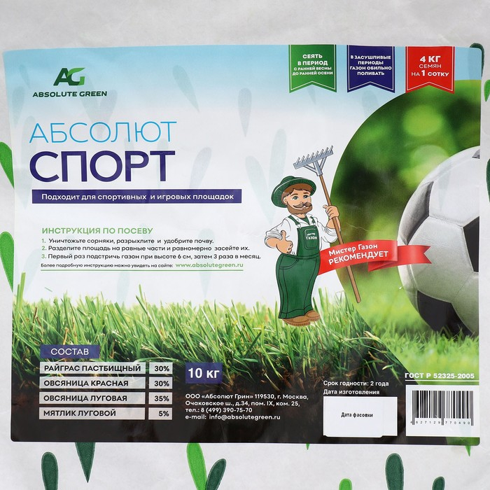 Газонная травосмесь Абсолют Спорт, 10 кг