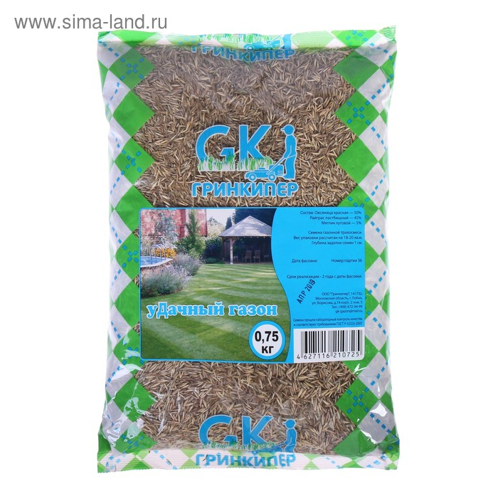 Семена газонной травосмеси. Вес упаковки рассчитан на 18-20 кв.м. Глубина заделки семян 1 см.