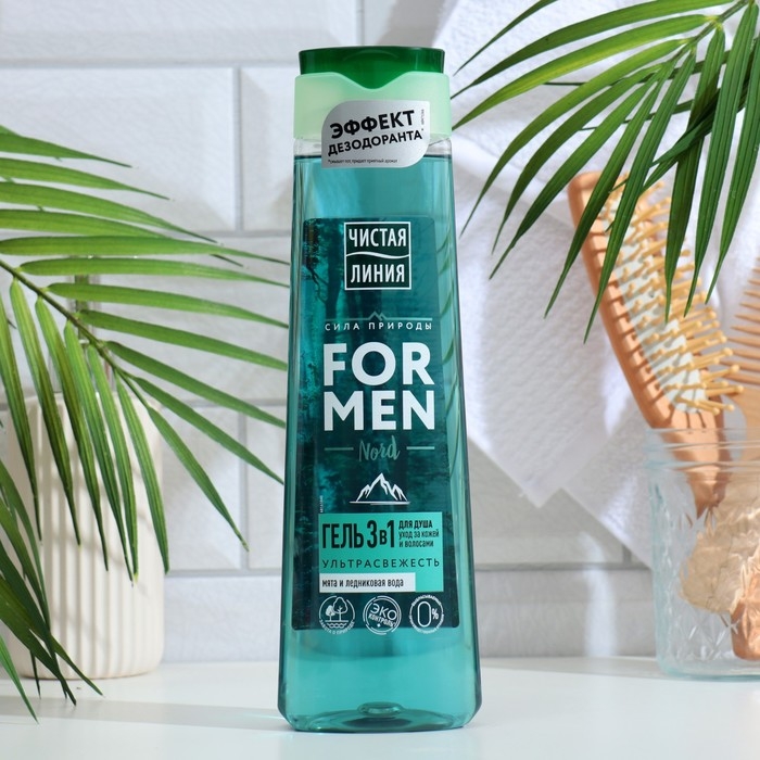 Гель для душа 3 в 1 "Чистая линия", "Мята и ледниковая вода", ультрасвежесть, 400 мл