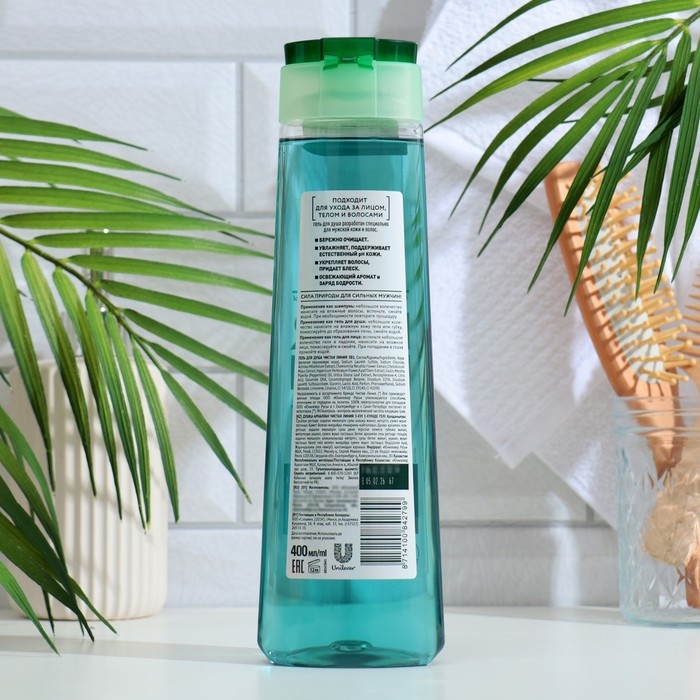 Уникальная формула шампуня – геля для душа 3 в 1 состоит на 80% из отвара трав. Активные натуральные компоненты средства укрепляют волосы от корней до кончиков, а освежающий аромат придает заряд бодрости. Дикая мята в составе обеспечивает гладкое и глубокое очищение по-мужски, ледниковая вода ухаживает за кожей головы и тела. Мужской шампунь – гель для душа придает ощущение свежести надолго. Гель для душа разработан специально для мужской кожи и волос. Подходит для ухода за лицом, телом и волосами.