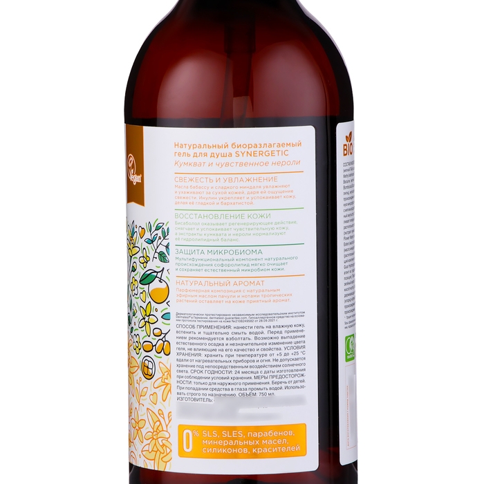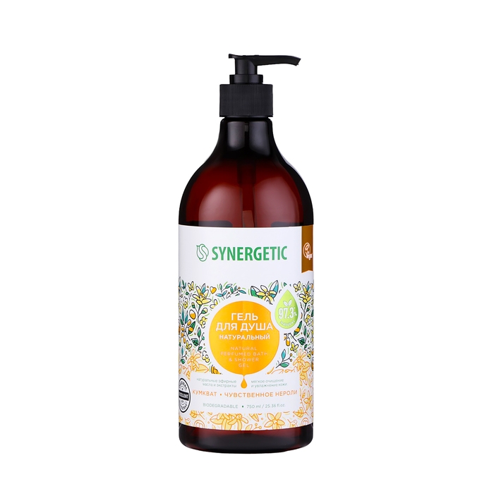 Гель для душа биоразлагаемый SYNERGETIC кумкват и чувственное нероли, 750 мл