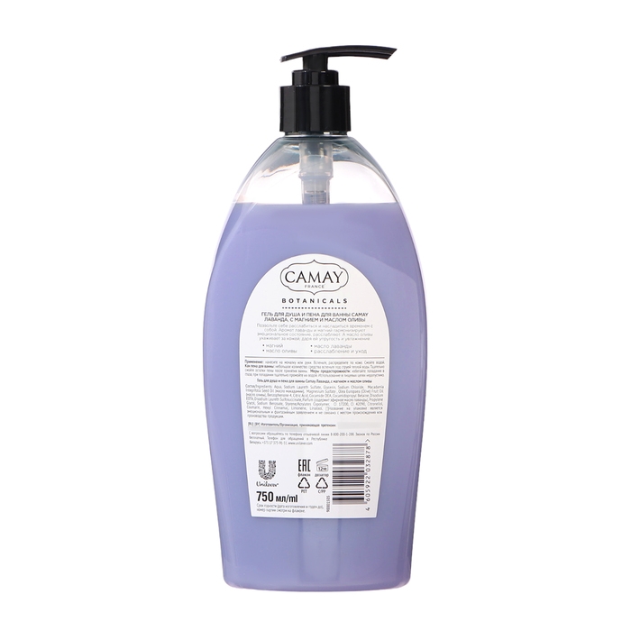 Гель для душа CAMAY 2 в 1 лаванда,магний и маслом оливы, 750 мл