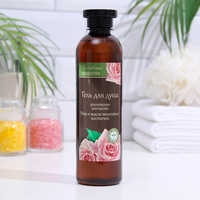 Гель для душа "Целебные рецепты", "Роза и масло вишневых косточек", роскошная мягкость, 400 мл