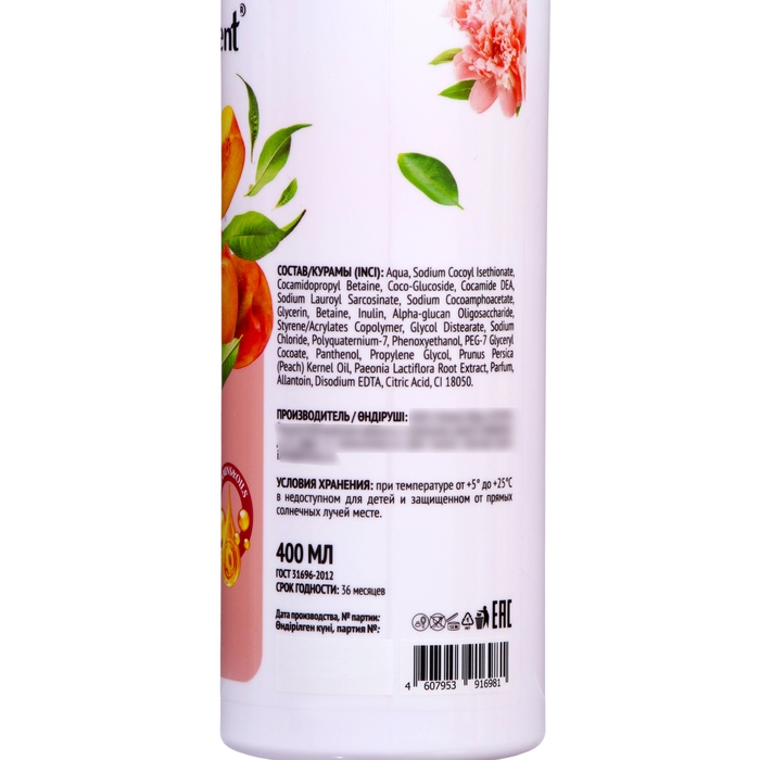 Состав: Aqua, Sodium Cocoyl Isethionate, Cocamidopropyl Betaine, Coco-Glucoside, Cocamide DEA, Sodium Lauroyl Sarcosinate, Sodium Cocoamphoacetate, Glycerin, Betaine, Inulin, Alpha-glucan Oligosaccharide, Styrene/Acrylates Copolymer, Glycol Distearate,Sodium Сhloride, Polyquaternium-7, Phenoxyethanol, PEG-7 Glyceryl Cocoate, Panthenol, Propylene Glycol, Prunus Persica (Peach) Kernel Oil, Paeonia Lactiflora Root Extract, Parfum, Allantoin, Disodium EDTA, Citric Acid, CI 18050.