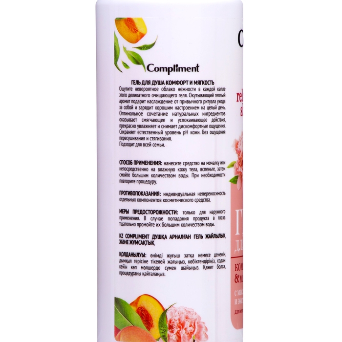 Натуральный гель для душа Compliment — это деликатное средство для очищения кожи, состоящее из натуральных компонентов. Аромат геля для душа разработан с использованием пиона.
