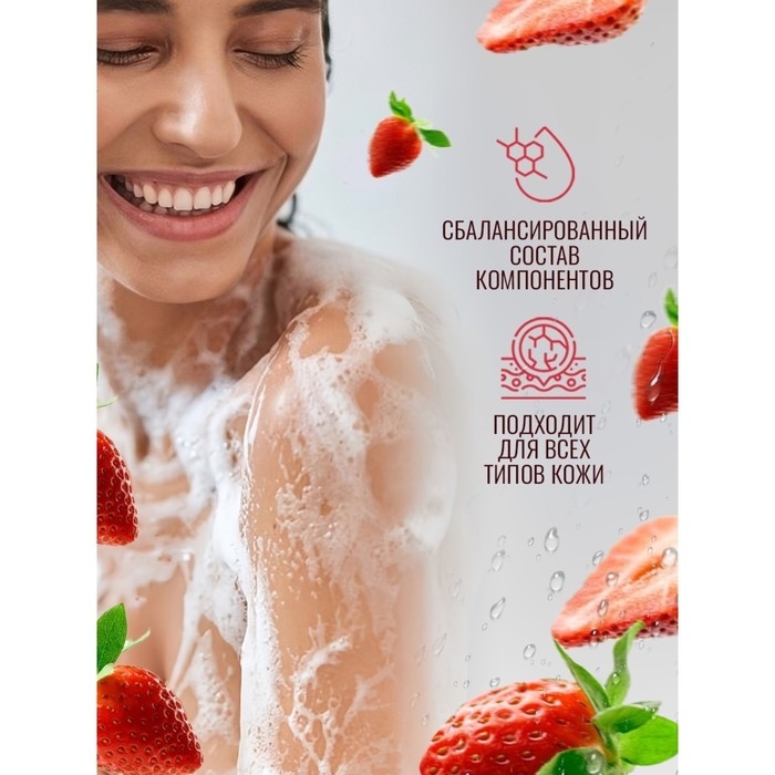 Насладитесь освежающим гелем для душа «Клубника». Изысканный клубничный аромат создаёт настроение чувственности и женственности. Воздушная пена прекрасно очищает и дарит ощущение свежести. Формула с ухаживающими компонентами питает и смягчает кожу, делая её нежной и соблазнительной. Сбалансированный состав компонентов геля подходит для всех типов кожи.
