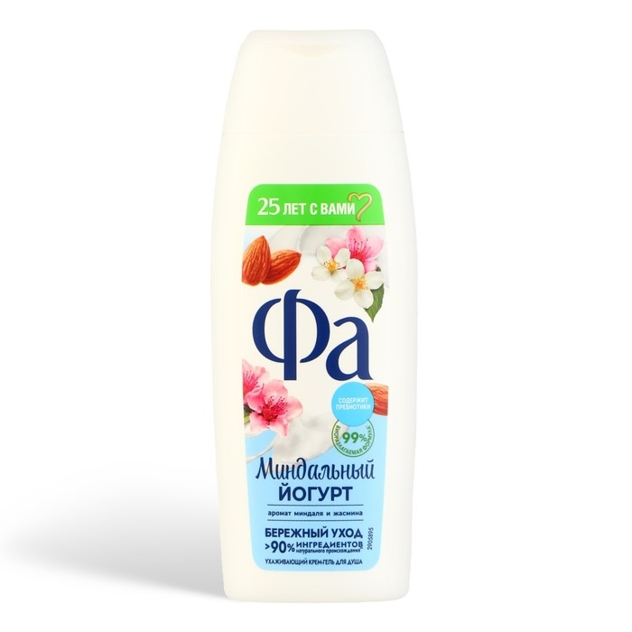 Крем-гель для душа ФА Миндальный йогурт, с ароматом миндаля и жасмина ‒ бережный уход с ароматом миндаля и жасмина. Почувствуй легкую свежесть, погрузись в мир новых впечатлений с крем-гелем для душа ФА.