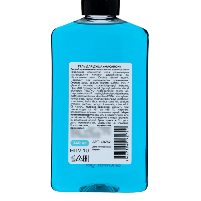 Гель для душа Milv "MACARON", 340 мл