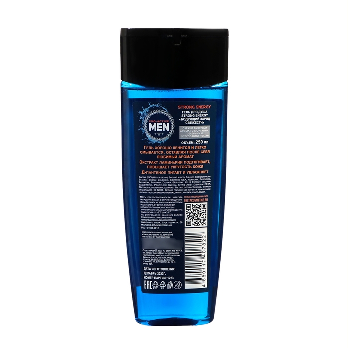Гель для душа мужской STRONG ENERGY "Бодрящий заряд свежести" содержит Д-пантенол и экстракт ламинарии, что делает его идеальным выбором для тех, кто хочет не только ощутить свежесть, но и обеспечить коже полноценный уход.