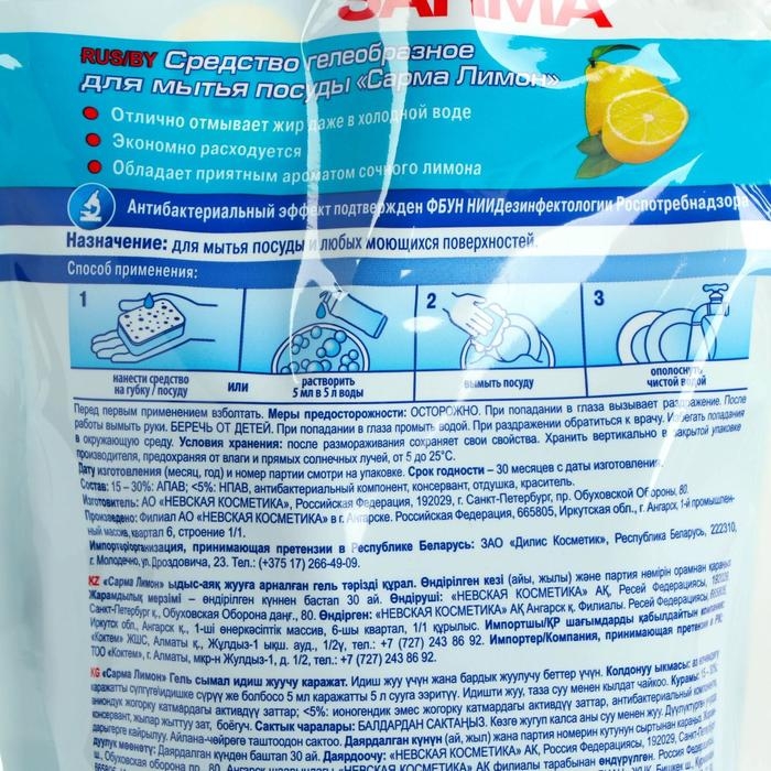 Гель для мытья посуды Sarma «Лимон», дой-пак, 1 л