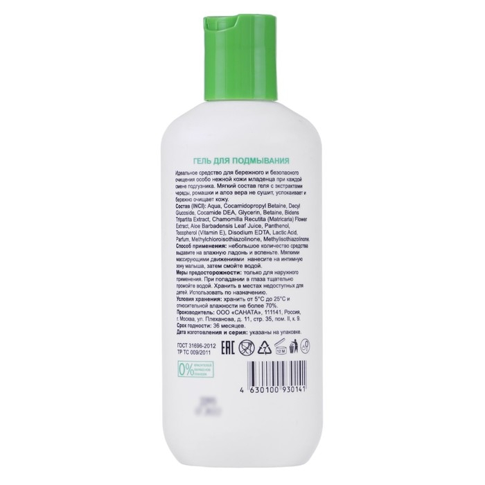 Способ применения: небольшое количество средства вылейте на ладонь и вспеньте. Мягкими массирующими движениями нанесите на интимную зону малыша, затем смойте водой.