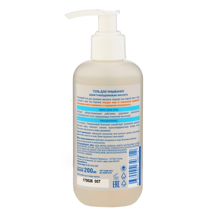 Гель для умывания лица цинк+гиалуроновая кислота. Очищающий гель для умывания от прыщей идеально подходит для жирной кожи и кожи, склонной к акне. Гель бережно очищает лицо от загрязнений, способствует обновлению клеток эпидермиса и сокращению несовершенств. Умывалка для лица содержит ЦИНК обладает себорегулирующим действием, сдерживает размножение Propionibacterium acnes, предупреждая появление высыпаний. Умывалка от прыщей содержит НИАЦИНАМИД в сочетании с ГИАЛУРОНОВОЙ КИСЛОТОЙ способствует улучшению защитных функций кожи, помогает снизить трансэпидермальную потерю влаги, повышает эластичность кожи, увлажняет.