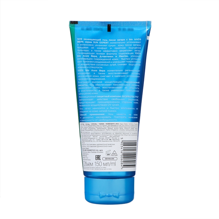 Охлаждающий гель после загара SOS 100% bio Алоэ вера SUN EXPERT моментально успокаивает и интенсивно увлажняет сухую кожу после загара, придавая ей комфорт и приятное ощущение прохлады, а также эффективно закрепляет загар.