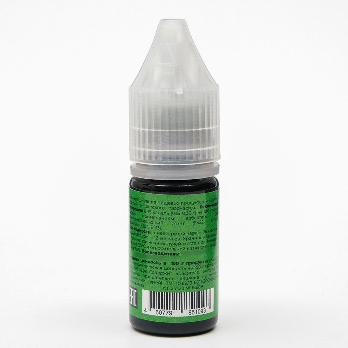 Область применения: для окрашивания продуктов питания и различных кондитерских изделий (теста, мастики, айсинга, марципана, крема и так далее), а также для детского творчества (мыловарение, слаймы).