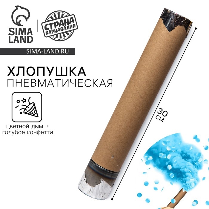 Гендер-пати. Хлопушка пневматическая с собственным дизайном «Цветной дым+конфетти», голубой, 30 см