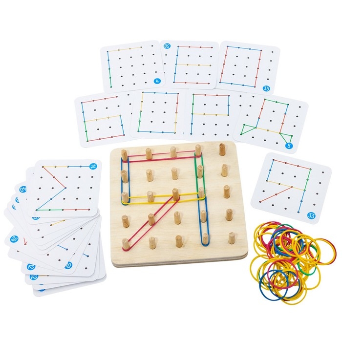 Геоборд основание, инструкция, 20 двусторонних карточек, 50 резинок, 14 × 14 × 2.5 см