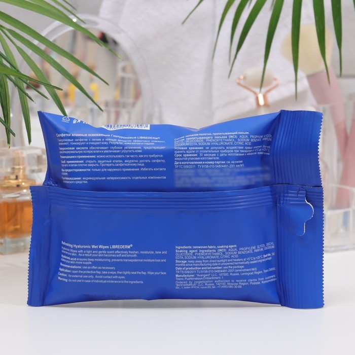 Гиалуроновые влажные салфетки LIBREDERM освежающие, 20 шт