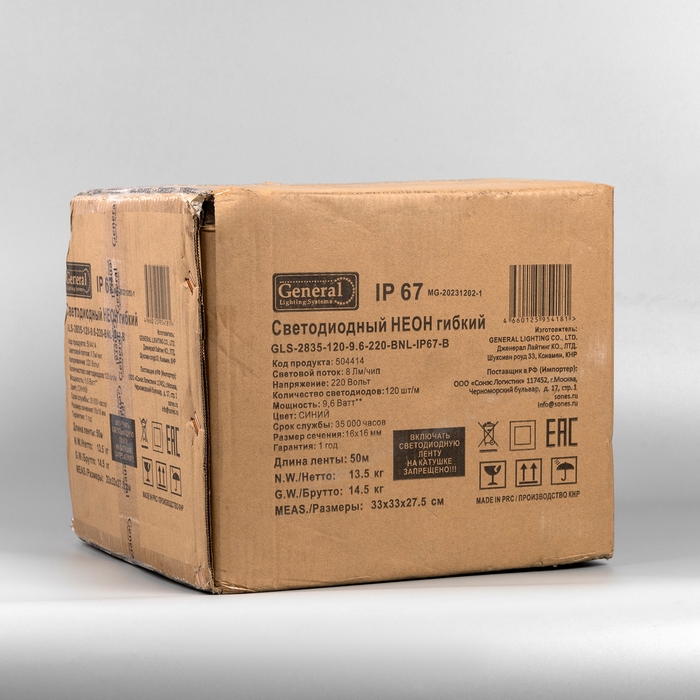 Гибкий неон General, 16х16 мм, 50 м, LED/м-120-SMD2835-220V, 9.6 Вт/м, IP67, СИНИЙ
