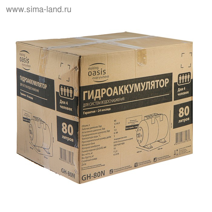 Гидроаккумулятор Oasis GH-80N, для систем водоснабжения, горизонтальный, 80 л