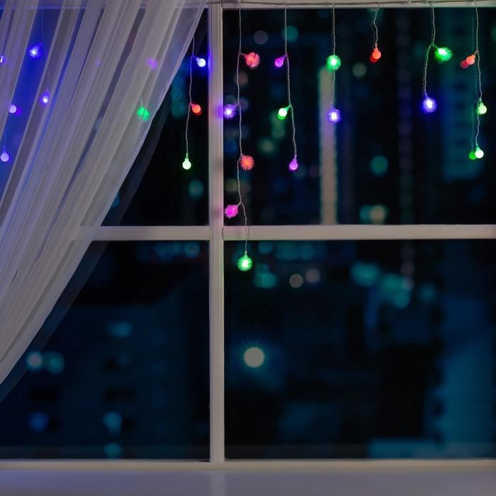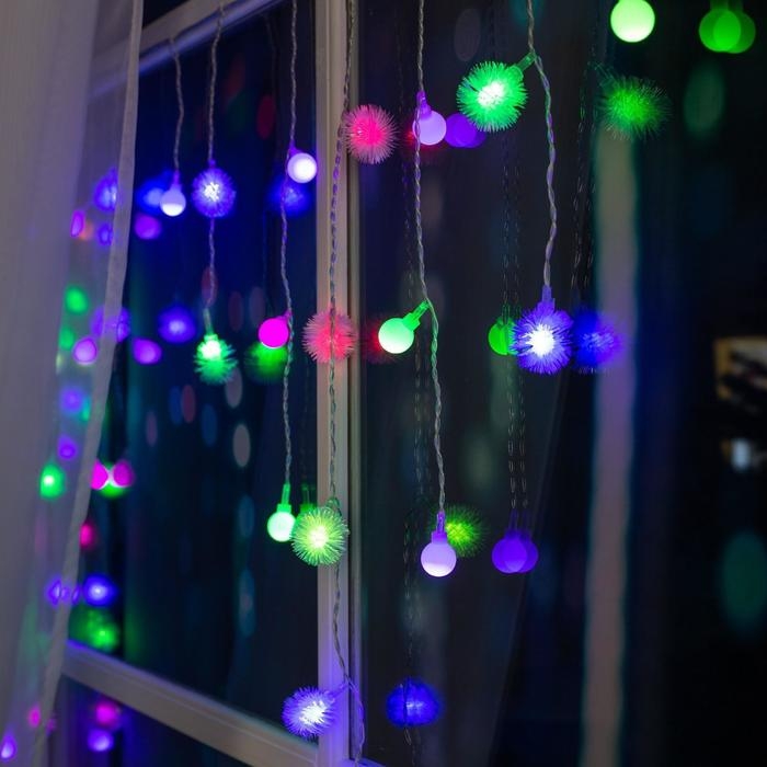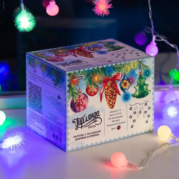 Гирлянда «Бахрома» 3 × 0.5 м с насадками «Шарики и ёжики», IP20, прозрачная нить, 80 LED, свечение мульти (RG/RB), мигание, 220 В