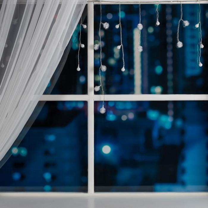 Гирлянда «Занавес» 2.5 × 0.65 м с насадками «Капли», IP20, прозрачная нить, 50 LED, свечение тёплое белое, 8 режимов, 220 В