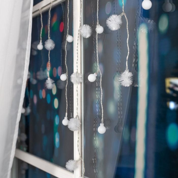 Гирлянда «Нить» 5 м с насадками «Ёжики белые», IP20, прозрачная нить, 30 LED, свечение белое, 8 режимов, 220 В