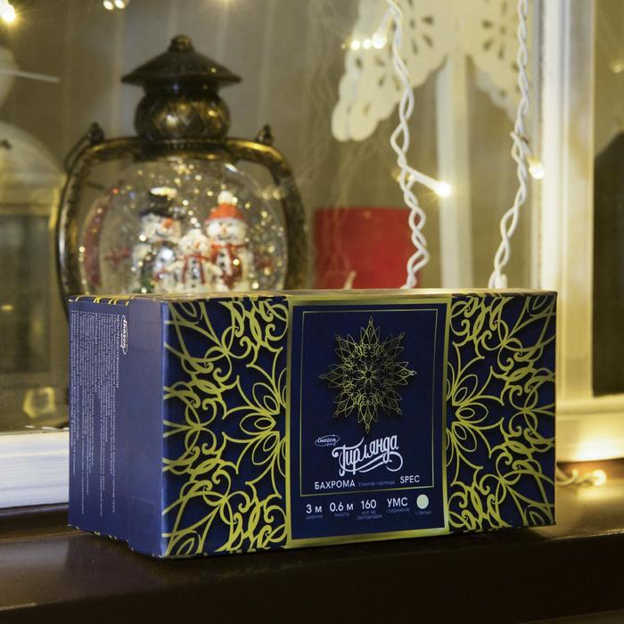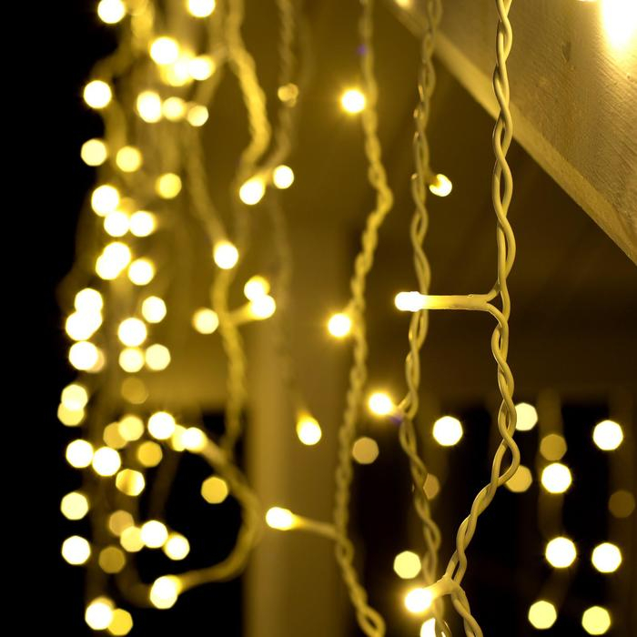 Гирлянда «Бахрома» 3 × 0.6 м, IP44, УМС, белая нить, 160 SMD-LED, свечение тёплое белое, 220 В