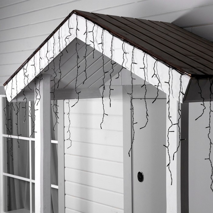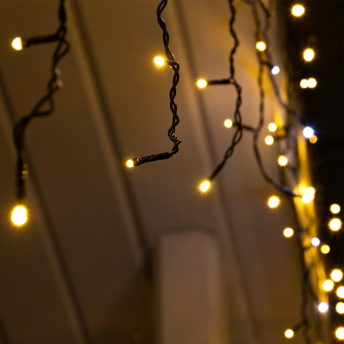 Гирлянда «Бахрома» 3 × 0.6 м, IP44, УМС, тёмная нить, 160 LED, свечение тёплое белое, мерцание белым, 220 В