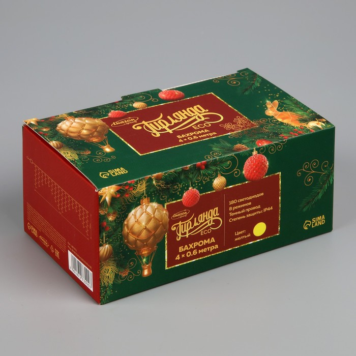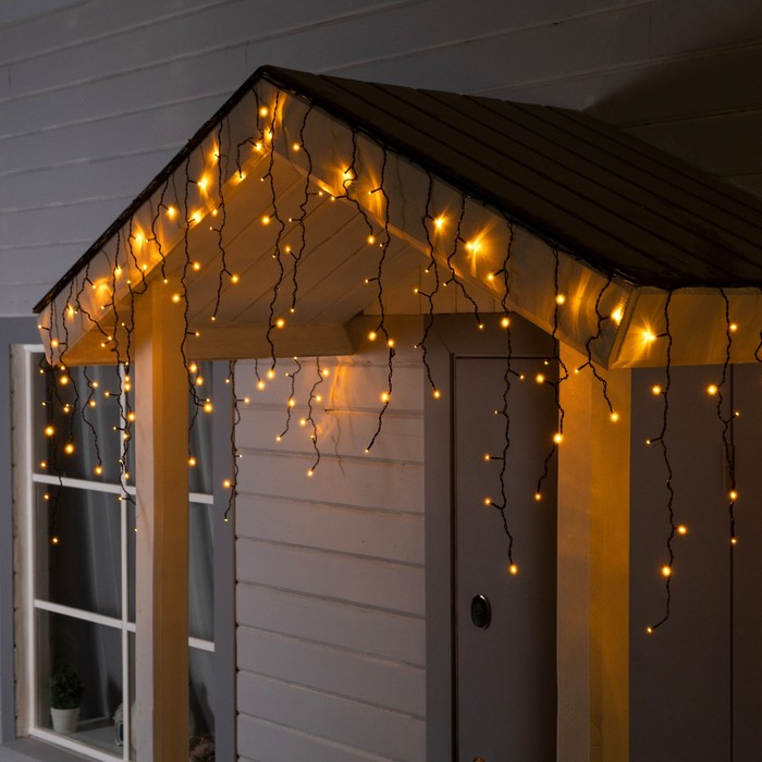 Гирлянда «Бахрома» 4 × 0.6 м, IP44, тёмная нить, 180 LED, свечение жёлтое, 8 режимов, 220 В