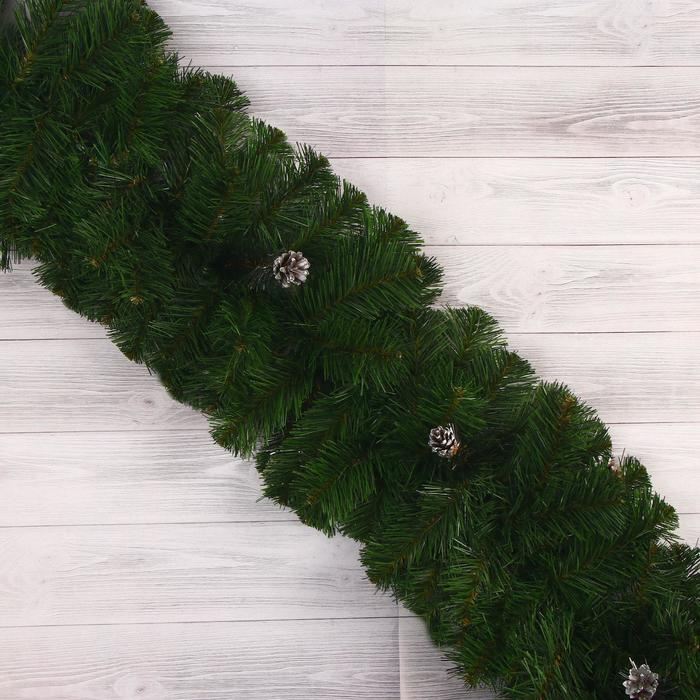 Гирлянда "Элитная пышная " с шишками серебро d-32 см 270 см
