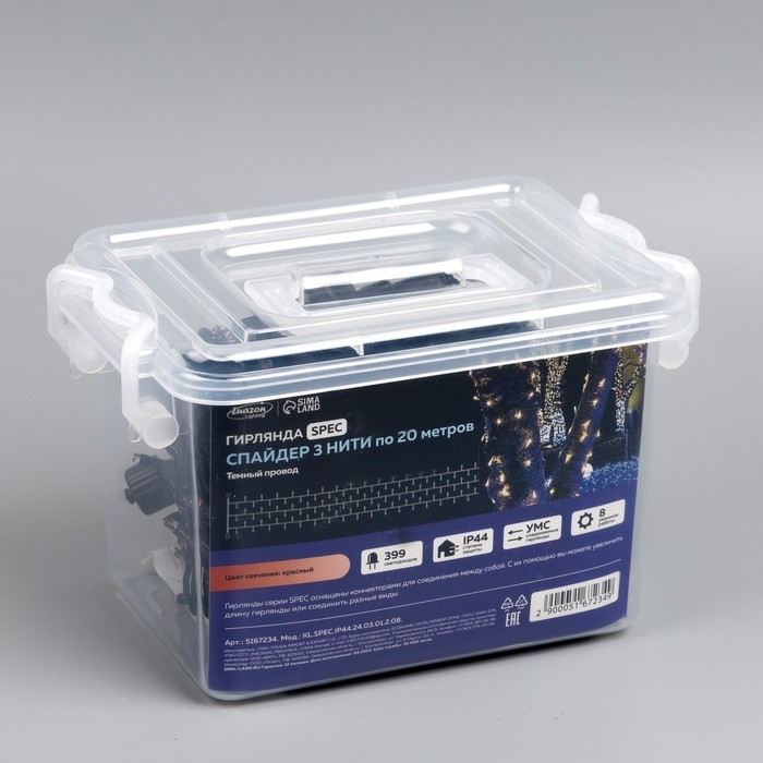 Гирлянда «Клип-лайт» 3 нити по 20 м, IP44, УМС, тёмная нить, 399 LED, свечение красное, 8 режимов, 24 В